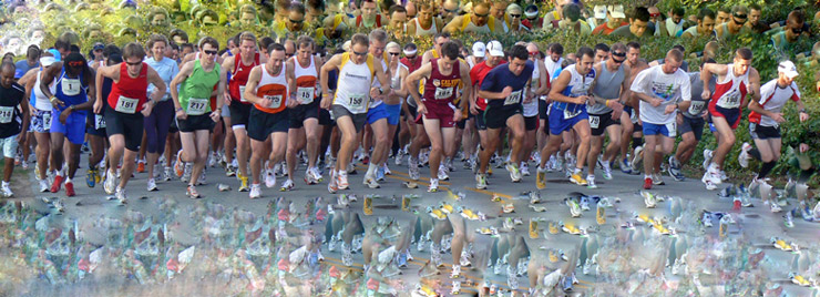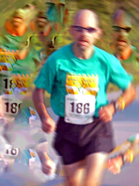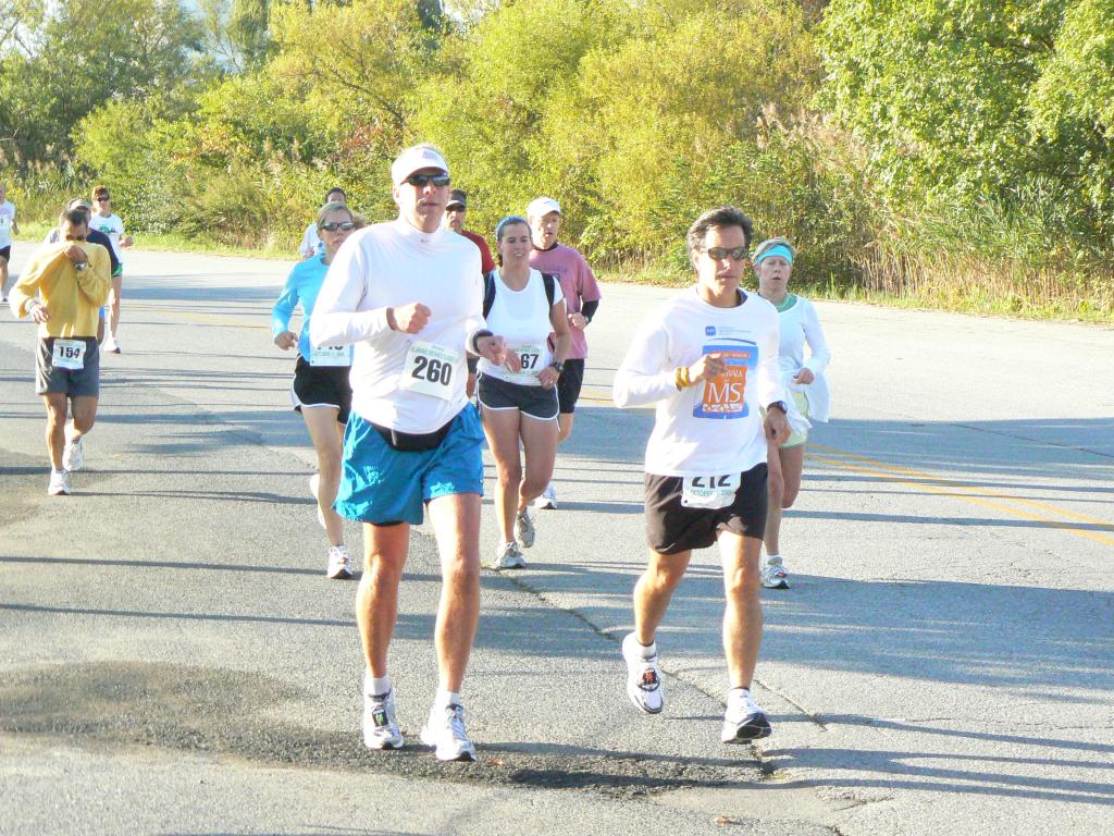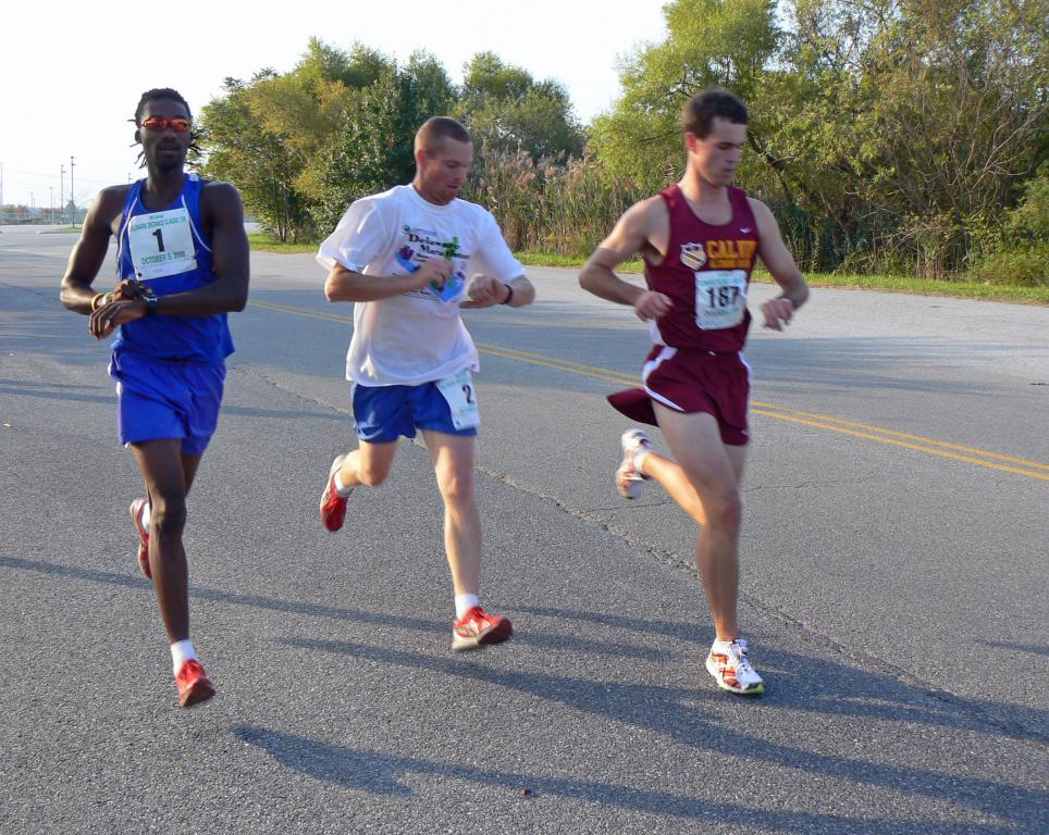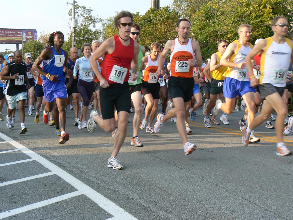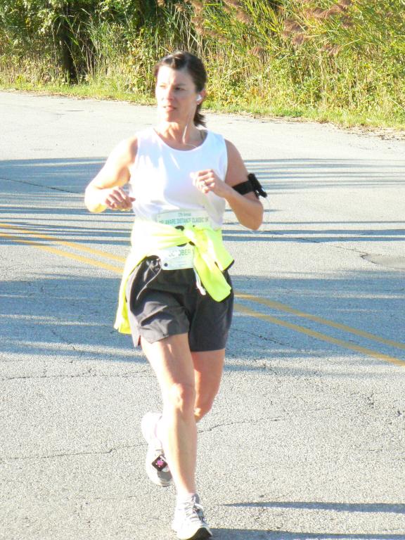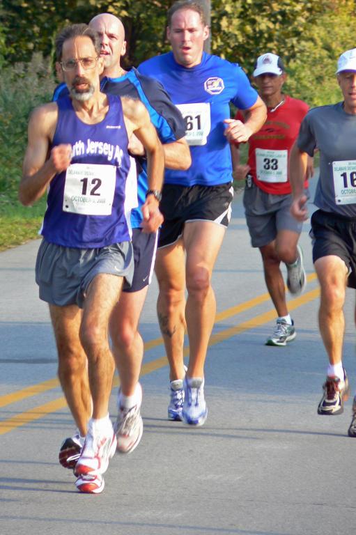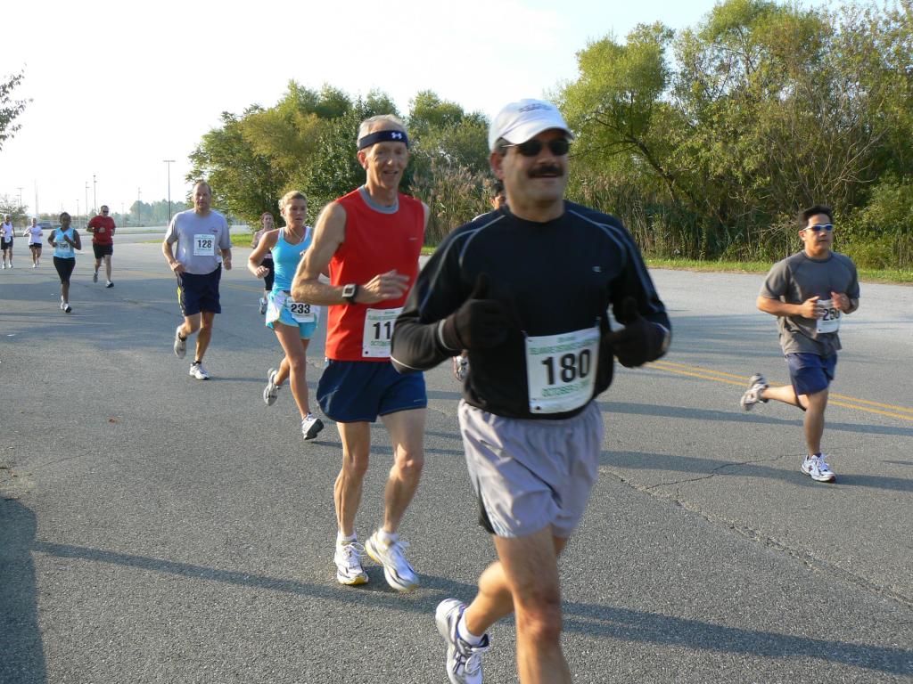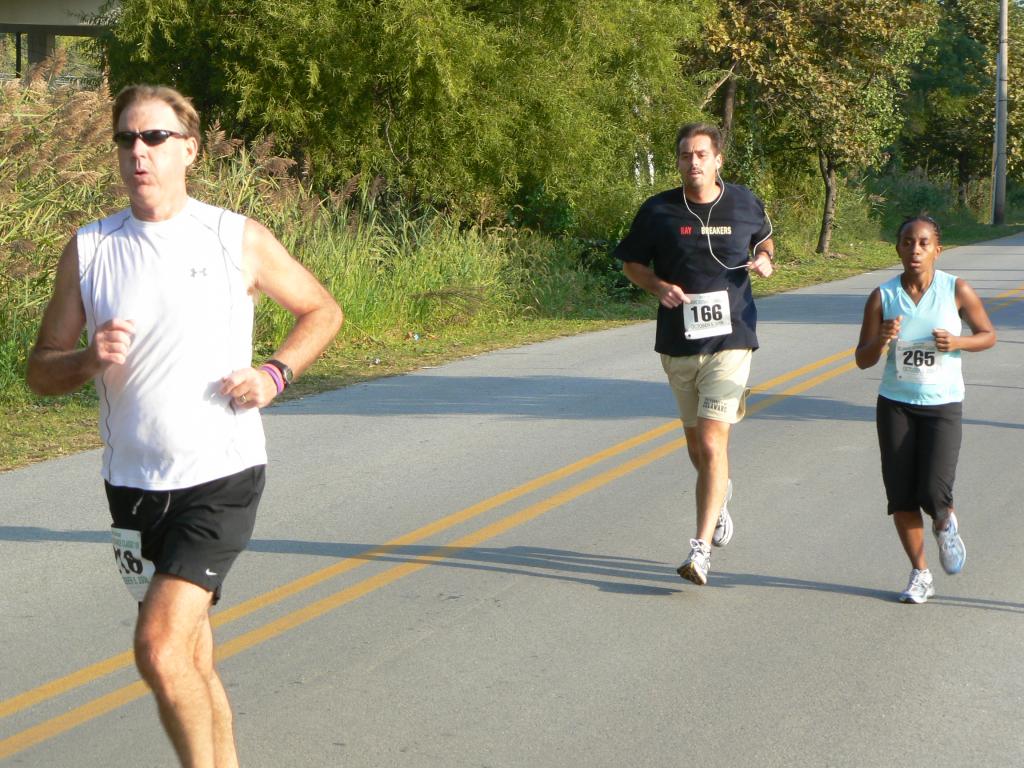 Even with the change in running date(with the second to first Sunday in October), registration was only down slightly with a total of 210 who registered. However, with about 200 actually towing the starting line, about 10% of the field could not complete the course, with 181 actually finishing. With the air temperature being in the upper 60s at the start, it felt cool enough for most runners to take off at their normal paces. But, unfortunately, the dewpoint was almost the same as the temperature, meaning that people heated up within a few miles and started to slow the pace or even overheat and stop. Fortunately no one required medical attention.